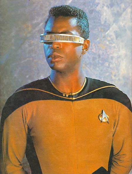 LaForge ist von Geburt an blind und benutzt seit seinem 5. Lebesjahr einen